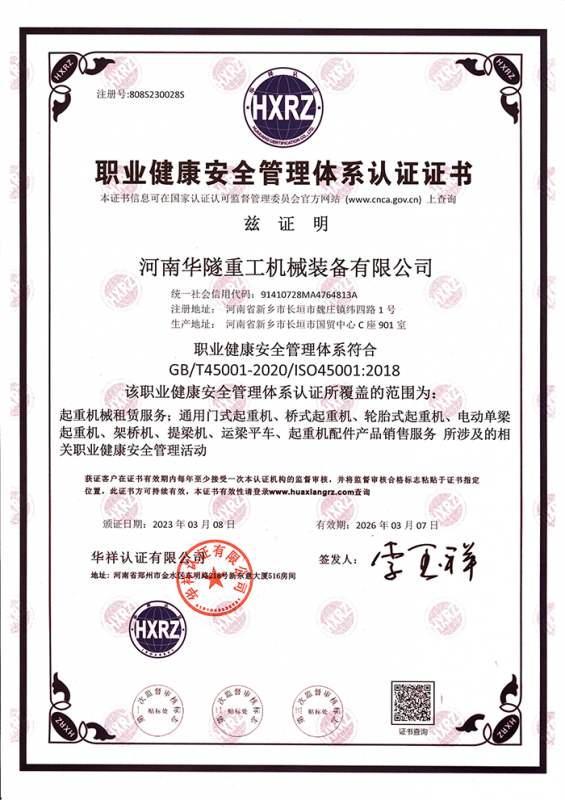 河南華隧重工機械裝備有限公司主要從事通用門式起重機、橋式起重機、電動單梁起重機,輪胎式起重機、架橋機、提梁機、遠梁平車、鋼絲繩電動萌蘆、卷揚機、起重配件制造、銷售:起重機械租賃、安裝和維修,起重設備園收,機械設備維修,鋼結構工程承包,橋梁工程及技術咨淘服務,銷售五金制品、機電設備:建設工程監理,建設工程設計,各類工程建設活動,建筑勞務分包,建筑物折除作業,施工作業,工程管理服務,土石方工程施工,裝如發運?! 」疽淹ㄟ^IS0國際質量、環境、健康與安全三合一標準認證,特種設備制造許可證和特種設備安裝改造維修許可證。擁有完熟的質量管理體系。嚴格的管理制度,強大的生產能力和先進的檢測手段,在保證產品質量的同時,也具備了極強的市場競爭力?! 」緢猿挚萍紕撔聻槔砟睿a品質量為核心,注重信譽,建立了減信可靠、快捷、思速。便利周到的售后服務網絡?! ∥覀儞碛械募夹g專家和技術服務隊伍為客戶提供充善的售前技術支持和全天候的售后服務體系,讓您無后顧之憂,享受一站式的超值服務?!  叭A隧重工,伴您成功“是華隧重工永遠的宗指,真被的希望與各界朋友攜手并進。共創輝準!